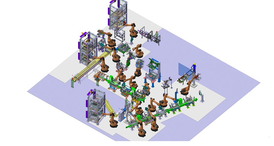 Ingeniería mecánica completa para montar el portón trasero del Seat León SE370. El proyecto incluye 20 estaciones de ensamblado de componentes, 8 garras dobles de robot, transfers, aplicación de másticos y soldadura de pernos. Todo desarrollado según los estándares de diseño Grupo Volkswagen.